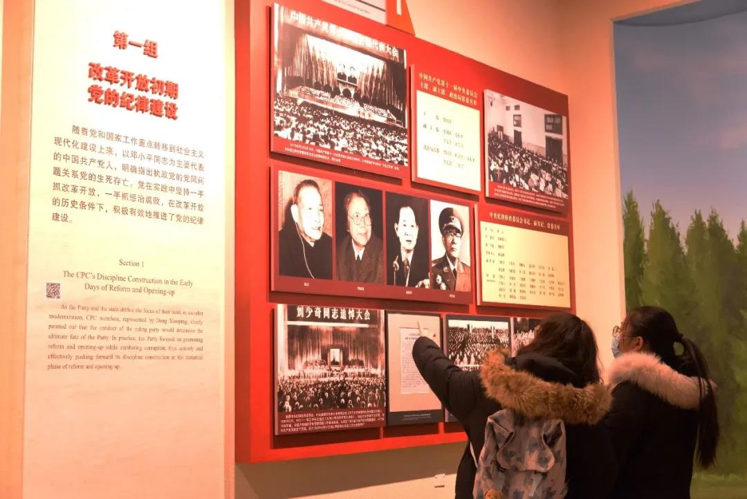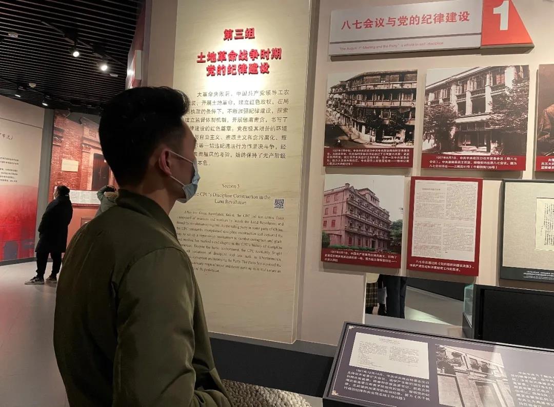 最后,同学们还参观了中国共产党纪律建设历史陈列馆。该展览由“新民主主义革命时期”、“社会主义革命和建设时期”、“改革开放和社会主义现代化建设新时期”三个部分组成。展厅运用电子翻书、多点触摸等科技手段,客观、真实、全面地反映共产党在不同历史时期的反腐倡廉理念、方针、政策、成果。在土地革命战争这一展区,同学们深刻感受到党在极其艰苦时期,依旧重视党的纪律建设。
