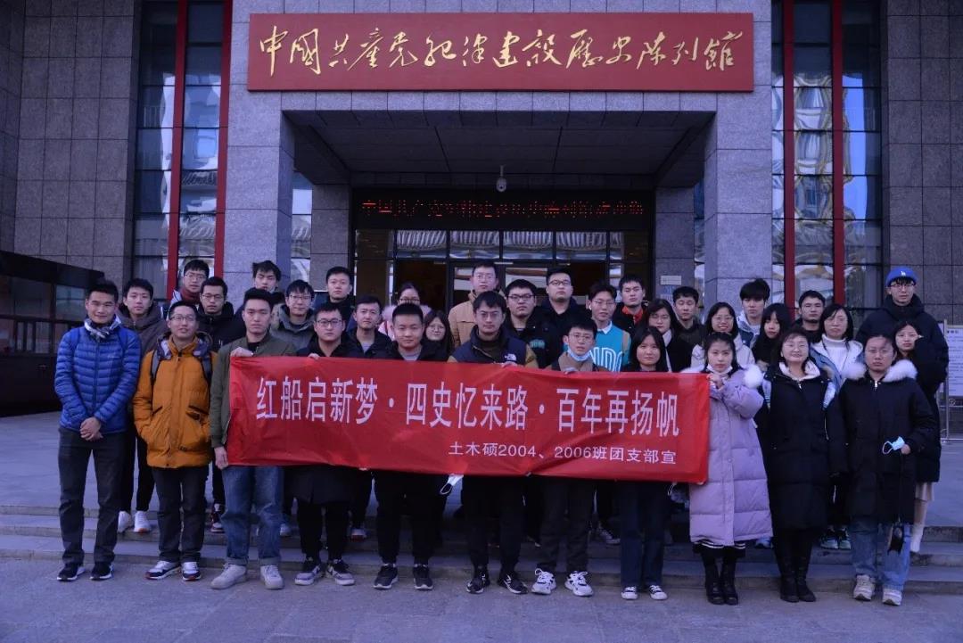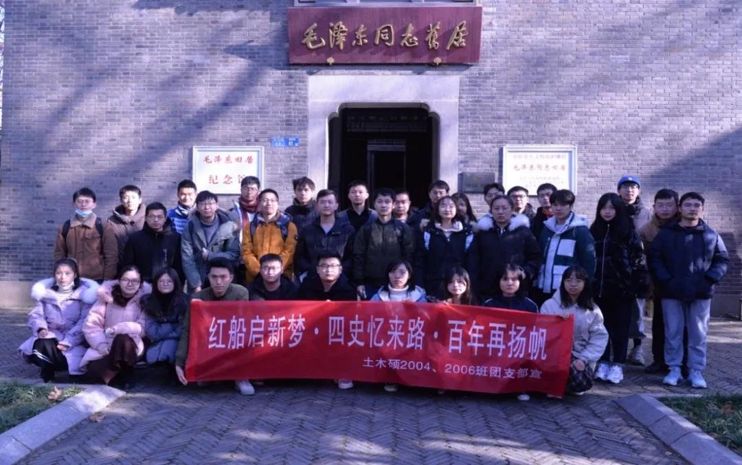 为加强团员对党史的了解,体会革命的艰辛历程,牢记共产党人的初心和使命,2020年12月30日下午,土木硕2004班与2006班团支部开展以“红船启新梦,四史忆来路,百年再扬帆”为主题的团日活动。活动具体包括参观武昌农讲所旧址革命馆、毛泽东同志旧居、中国共产党纪律建设历史陈列馆等场所。