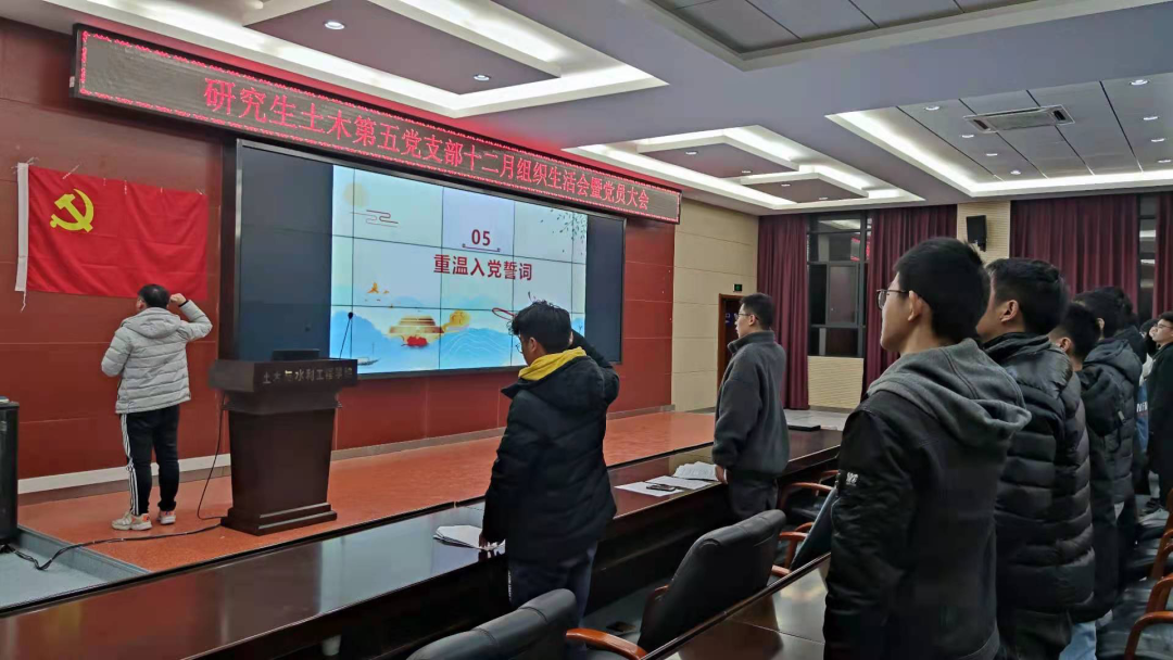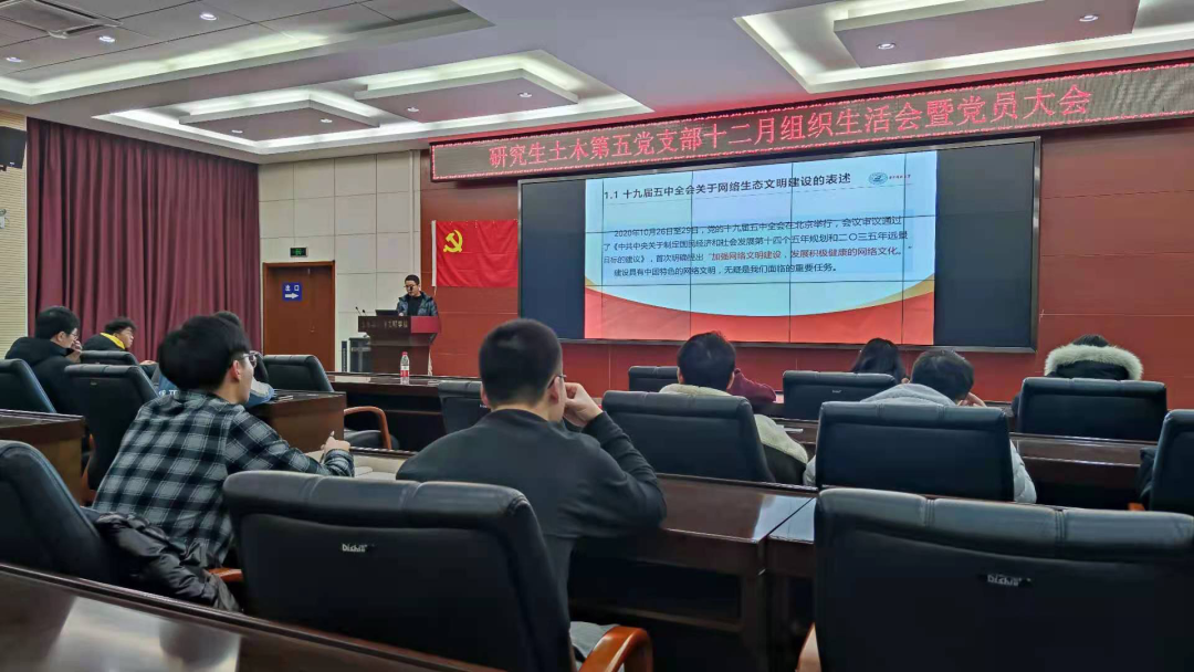 2020年12月28日晚,永利3044集团官网研究生土木第五党支部十二月组织生活会暨党员大会于西六楼会议室召开,本次会议由研究生土木第五党支部支部书记黄小松同志主持。会议议程包括主题微党课学习,支部讨论接收预备党员、预备党员转正以及支委汇报2020年支部工作。