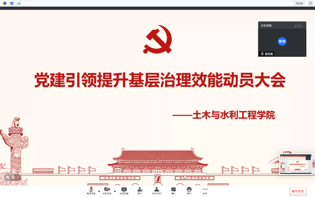 2021年2月2日下午,永利3044集团官网特色党日活动“党建引领提升基层治理效能”动员大会在线上顺利召开,会议内容是讲解“党建引领提升基层治理效能”特色党日活动内容,介绍永利3044集团官网党建工作、公司资助工作,研究生土木第二、第三、第四、第五、第七、第十一党支部全体党员在线参加,会议由第四党支部书记胡俊杰主持。