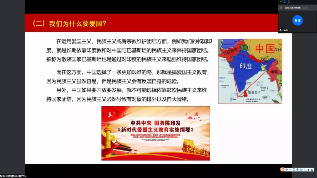 刘聪健同志主讲微党课“我们为什么要爱国?”。首先,爱国源于国家的养育之恩;其次,国家需要我们去爱,需要爱国主义来维护团结,爱国也是社会主义核心价值观的重要内容。