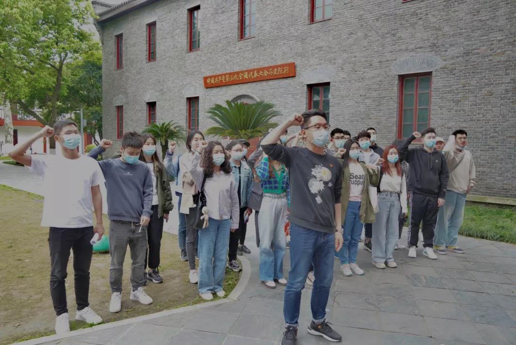 中午12点20分,同学们陆续到达西六楼前。随后,大部队统一乘坐校车前往中共五大会址。到达活动地点后,各小队分别在各自讲解员带领下参观了中共五大会址,学习革命历史。在党支部书记柳洋的带领下,同学们站在鲜红的党旗前,举右手握拳庄严宣誓:“我志愿加入中国共产党,拥护党的纲领……”同学们以饱满的热情和昂扬的姿态,表达着为党的事业奋斗终身的决心和坚定信念。
