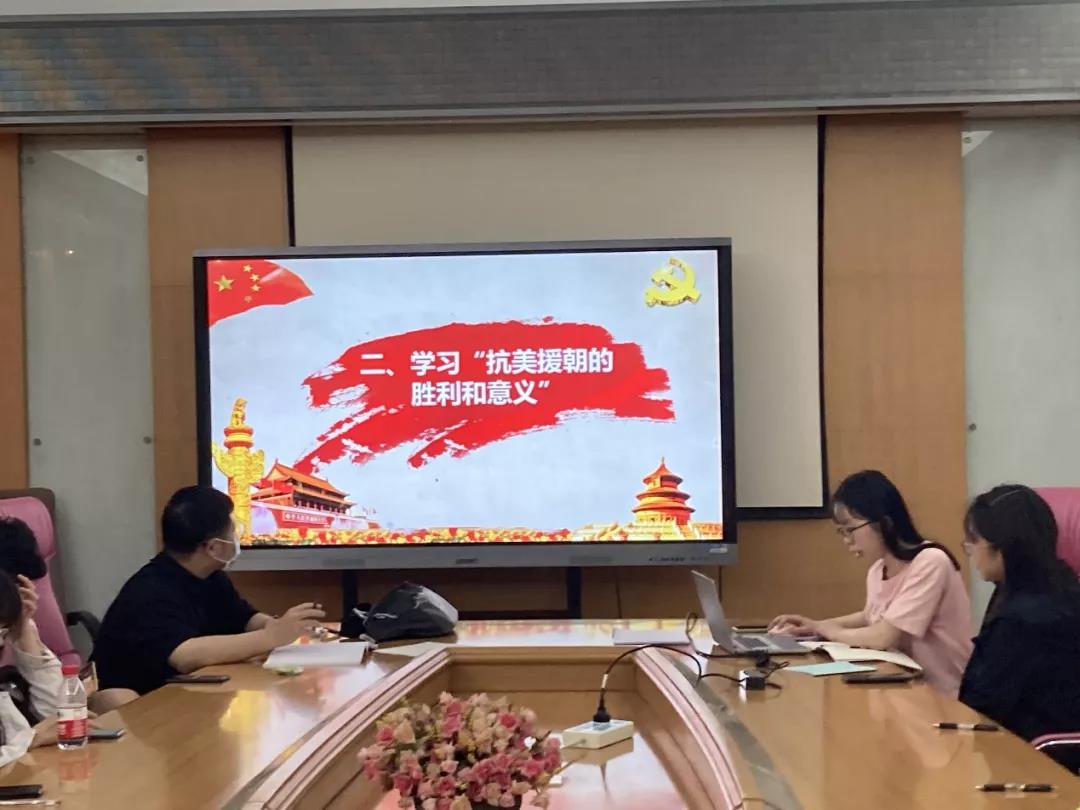 交流讨论过程中,毛佳倩同志以“学习抗美援朝的胜利和意义”为题,通过分享抗美援朝的历史背景、战争过程、历史意义三方面。毛佳倩同志说到抗美援朝的胜利一方面是中国的胜利,同时也维护了亚洲和世界和平,使中国的国际威望空前提高,极大地增强了中国人民的民族自信心和自豪感,为国内经济建设和社会改革赢得了相对稳定的和平环境。