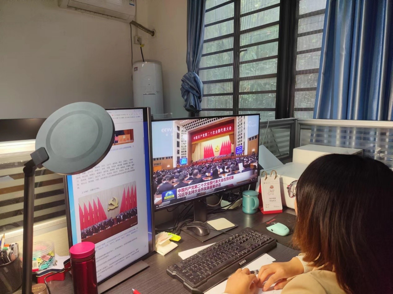 胡琴老师表示,党的二十大报告梳理了新时代十年来对党和人民事业具有重大现实意义和深远历史意义的三件大事,总结了党和国家事业取得的历史性成就、发生的历史性变革,描绘了未来党和国家事业的发展方向与发展目标。作为一名一线教师,定要在党的二十大精神的指引下,把握好习近平新时代中国特色社会主义思想的世界观和方法论,落实立德树人根本任务,争做“大先生”,为办好人民满意的高等教育尽心竭力。