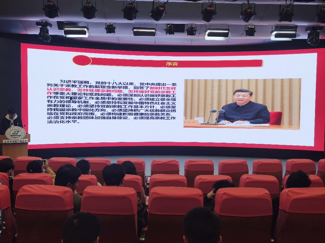 彭沛航同志讲解了习近平总书记在全国宗教工作会议上的重要讲话精神,带领同志们学习了习近平总书记关于怎样认识宗教、怎样处理宗教问题、怎样做好党的宗教工作以及如何在理论层面、实践层面开展宗教工作的阐述。