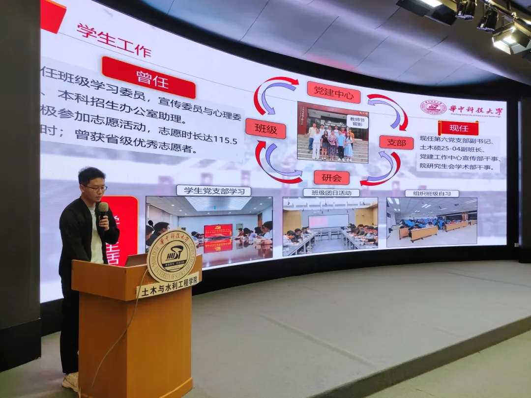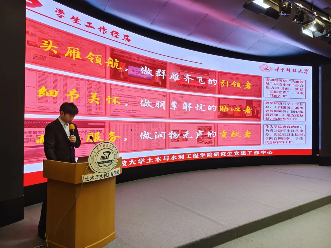 第五届党建工作中心主席团成员陈柯宇以“党旗领航创卓越,砼心筑梦谱华章”为主题总结上一学年研究生党建工作中心工作。他指出,过去的一年里,党建工作中心取得了丰硕的工作成果。在制度规范方面,完善了党员成长积分、竞选换届等制度机制,形成了“党委领导带头、辅导员重视支持、党务工作者自觉落实”的工作机制,确保党建工作规范化、制度化,推动党建与育人深度融合。在思想建设方面,中心常态化开展“三个一”红色理论学习:每日一句理论金句学习,每周一次专题学习研讨,每月一篇学习心得撰写,促进中心成员日有所学、周有所感、月有所结,有效提升中心全体成员思想水平;通过中心常规例会、秋季学期总结大会、新媒体培训会等理论教学与研讨交流相结合的培训交流会,有效提升中心成员工作能力。在对外交流共建方面,积极参与党建工作沙龙、德育工作沙龙、红楷座谈会等校级会议6次,严格落实永利3044集团官网党建工作中心工作指示。在校院协同联动品牌活动中,永利3044集团官网党史知识竞赛动员74组、222名同学参与,线上答题累计超1000人次,荣获校优秀组织单位奖;微党课大赛动员3个支部参赛,1支作品获评优秀微党课作品;“双百”大赛16支作品参赛,4支作品获奖,再次斩获校优秀组织单位奖。在公司年度评选中,公司进入终期答辩,中心获评“优秀院系员工党建工作中心”。在公司特色活动方面,中心积极动员组织19个研究生党支部,充分发挥主观能动性,不断发掘、开展品牌化特色化活动:积极开展对外交流共建,联合大连理工大学建设工程公司、中南财经政法大学财政税务公司等单位累计开展7次宣讲交流活动,拓宽党建工作视野;与兄弟院系、“头雁领航”班级、研究生党支部深入社区、红色纪念馆等地联合开展14次志愿实践活动;开展体育锻炼月、笔墨传情、中华传统文化实践体验等9次特色鲜明的联合主题党日活动,覆盖众多师生,提升基层党组织凝聚力。