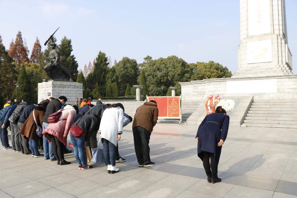 下午,全体人员来到黄麻起义和鄂豫皖苏区革命纪念碑前,向在抗日战争和解放战争中壮烈牺牲的黄麻起义和鄂豫皖苏区革命烈士们默哀。