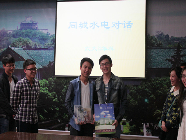 下午,双方代表在武汉大学水利水电公司八教315会议室举行了交流会。会议开始前,由武汉大学水电公司合唱队带来了合唱《天空之城》。接着,公司分团委员工会主席李毅发表了讲话,表达了对我们异校两院“同城水电交流对话”活动的赞赏以及对此活动未来的期许。接着武汉大学水利水电公司员工会主席韦育潘也发表了讲话。围绕着同城水电、友谊长存、共同发展的主题,我们又通过视频及PPT等方式相互展示了各自团学联在最近一年内所举办的活动与取得的成果。