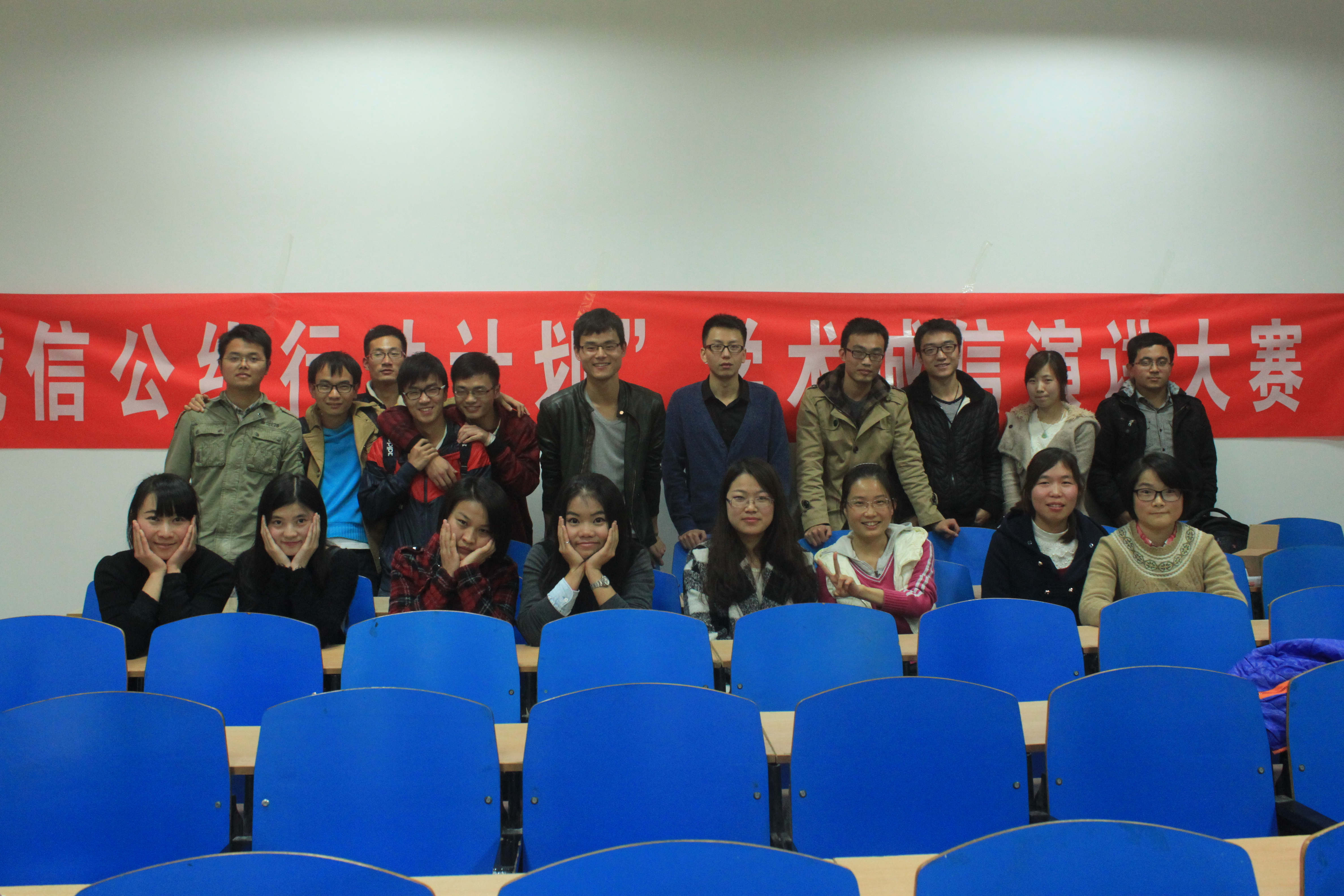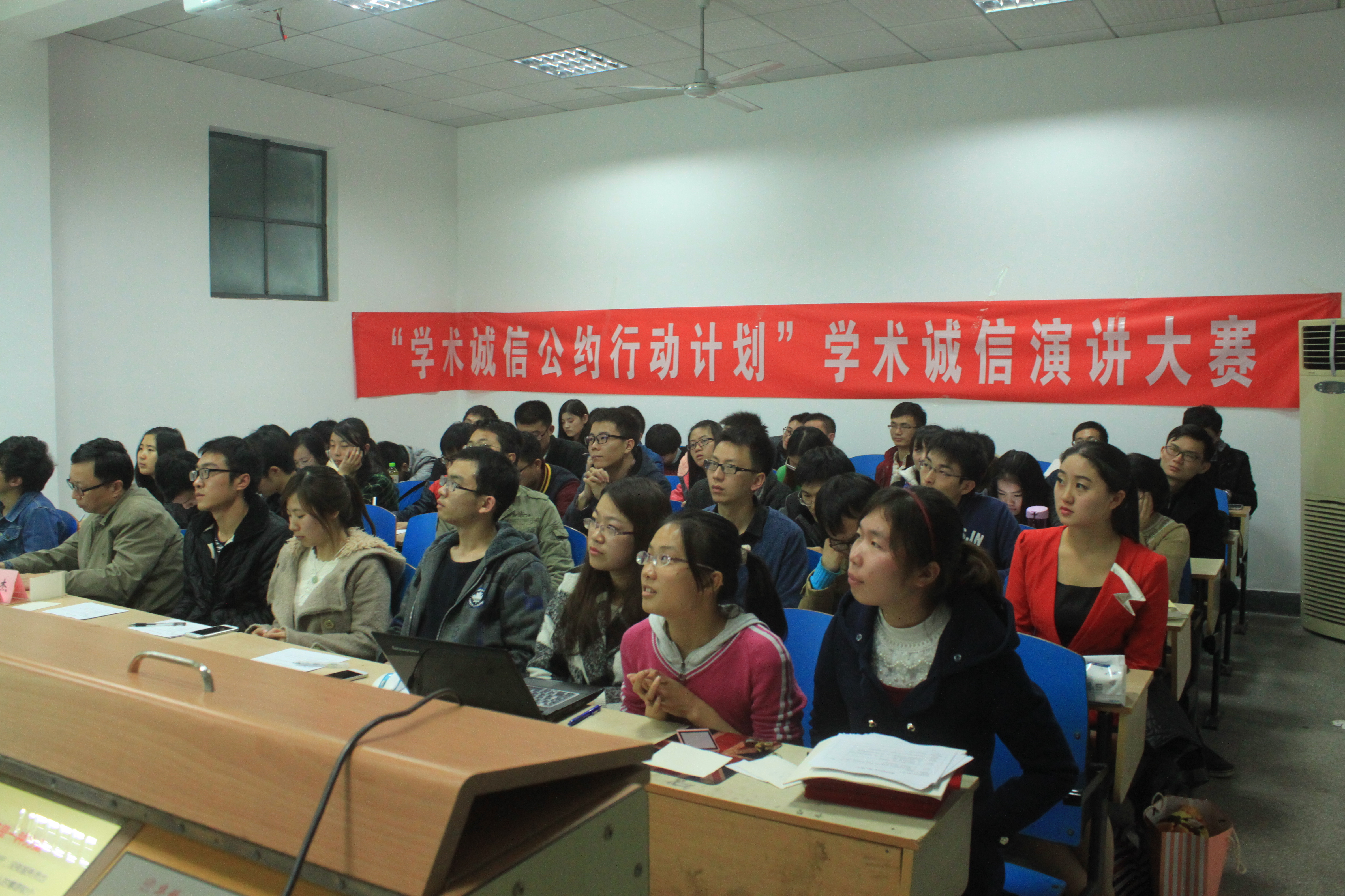 在短短的一个小时中,7位选手依次登台,或激情飞扬、或深情倾诉、或现身说法,表达自己对学术诚信的见解与思考。其中,赵会贤同学,以《勿悔过往,前行路上多钻研》为题,指出针对学术诚信之建设优良学风,加强老员工学术素养来说。呼吁“ 作为研究生的我们必须要get一项新技能:搞科研”配合其别具一格的表现风格与风趣的语言,引起了观众的一致好评;李权同学则以“ 我们为什么需要社会信用意识?”为题,援用社会实例,呼吁在坐的各位,加强社会信用,开始相信其他人,让我们的社会更加的和谐美好;活泼开朗的张茜同学分享了自己的人生经历,强调要自强,自己努力向上。