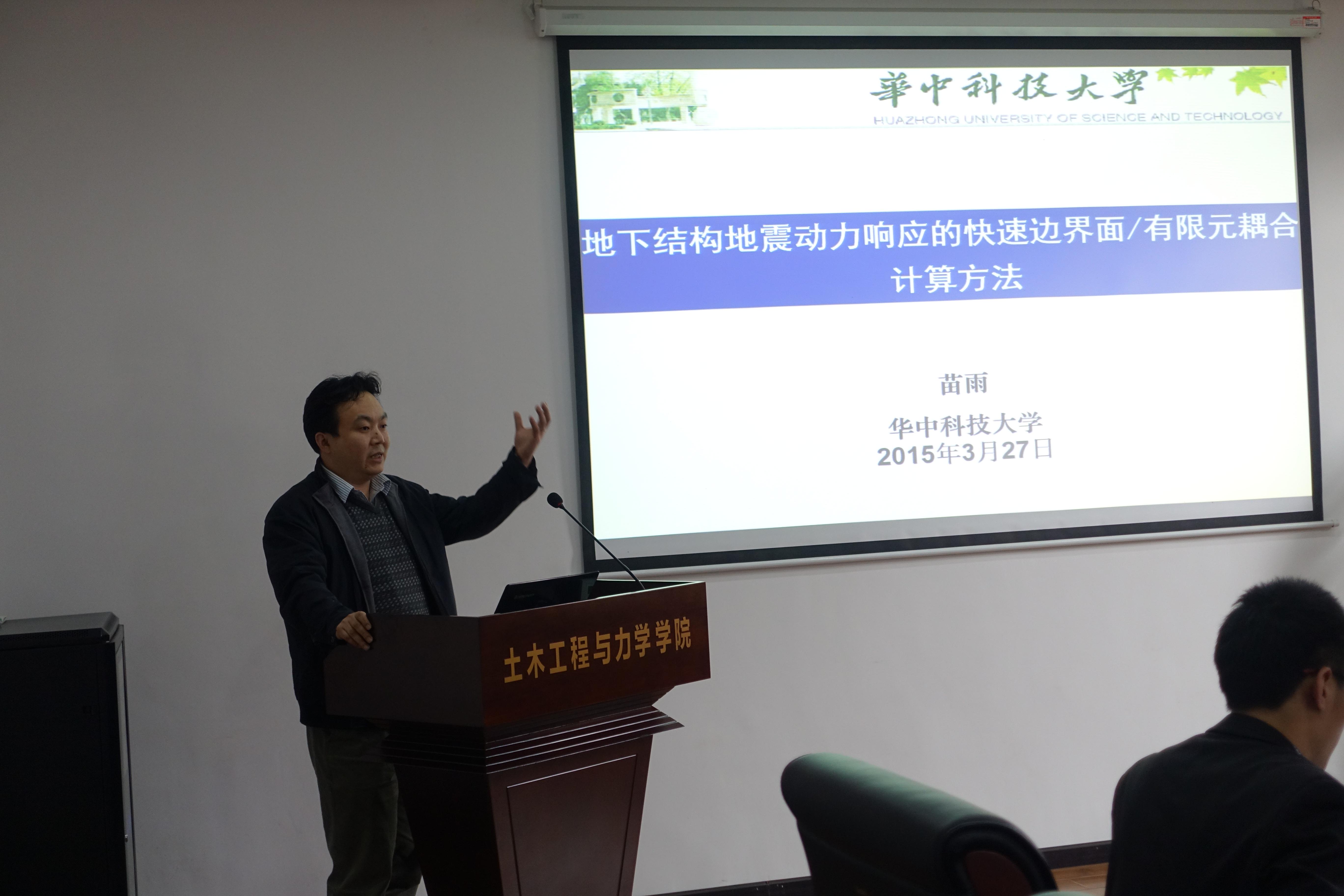 3月27日下午,土木工程与力学公司学术年会之岩土方向专业交流会在西六楼三楼工管会议室举行。本活动的主旨是为帮助同学们了解各专业的前沿发展动向,增强公司学术气氛和学术科研能力,通过思想的碰撞,帮助博士和硕士研究生能够在学术研究中平等交流、开阔思路。特邀土木工程与力学公司刘华北教授、苗雨副教授、章荣军副教授、博士生姚二雷、赖汉江、曹文昭出席此次学术年会。此次岩土专场是研究生会学术年会第一期活动,马志凤老师致开场词。