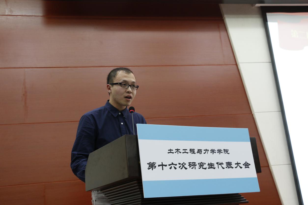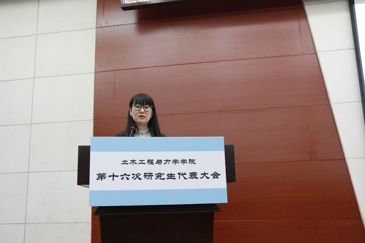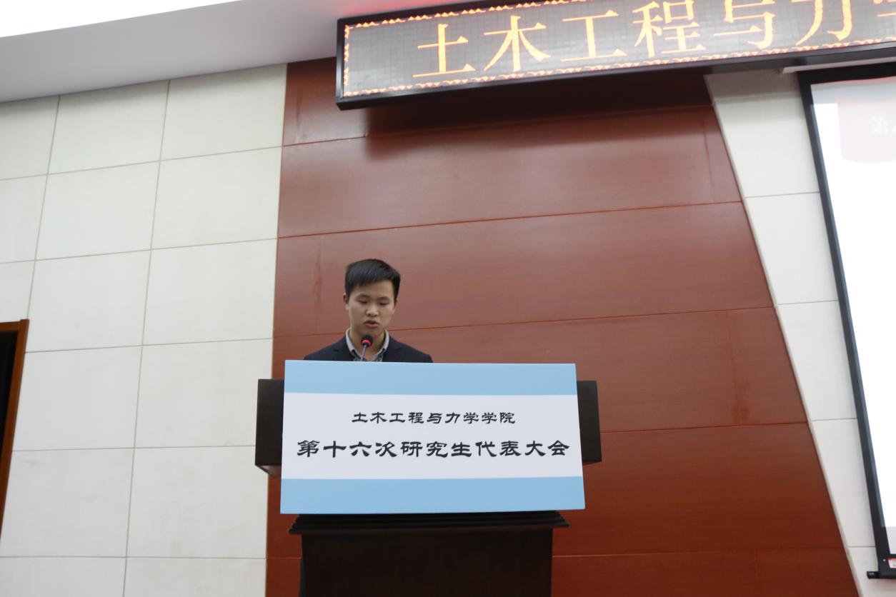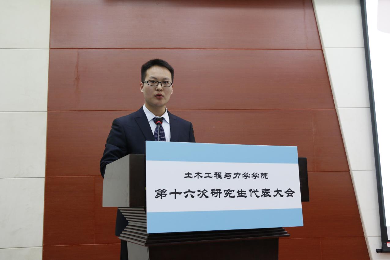 首先,由校研究生会执行主席徐捷宣读了校研究生会对土木工程与力学公司第十六次研究生代表大会的贺信,表达了对土木工程与力学公司第十五届研究生会工作的充分肯定以及对即将选出的新一届主席团的殷切期望。