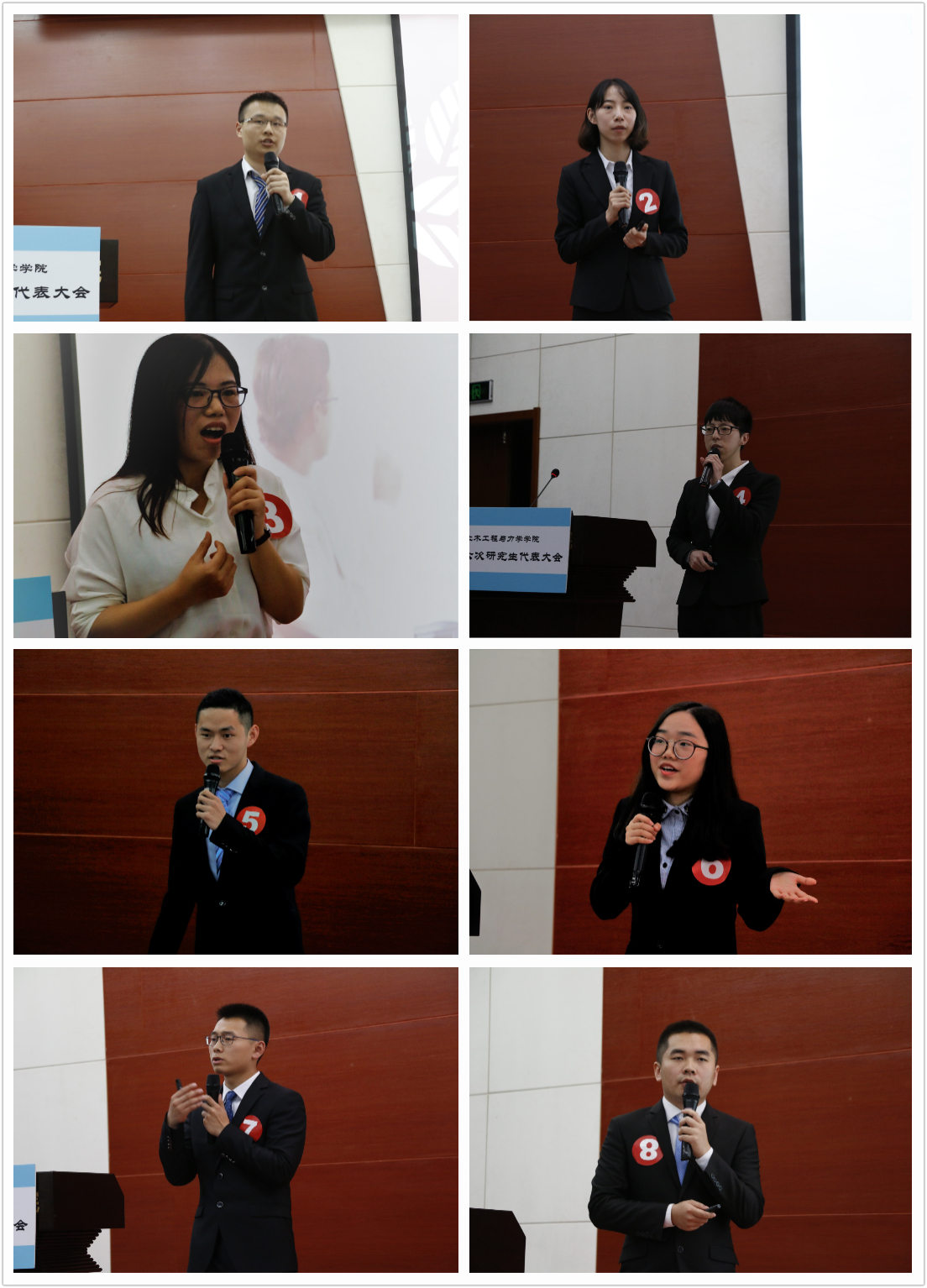 然后就是竞选演讲环节,按照抽签顺序,八位候选人依次登场,进行了三分钟简短而精彩的竞选演说,并接受了观众一分钟的现场提问。候选人各具魅力的风采展示、见解独到的工作规划,给现场的各位代表留下了深刻的印象。