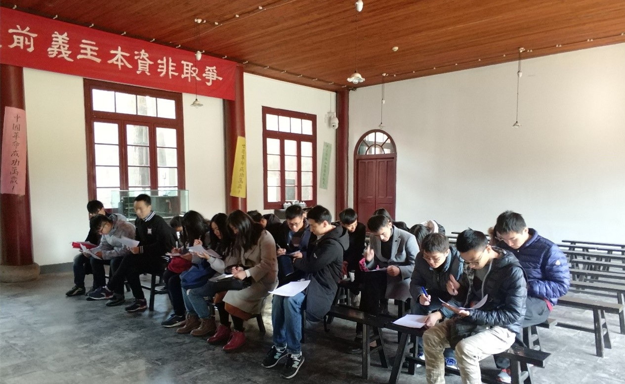 在本次“红色之旅”的最后一站中共五大会址,支委会在现场组织了一场学习成果测试,主要考察本次微党课讲授内容和课下十九大报告的学习效果。测试题目分为选择、填空和问答三种题型共20道题。测试完成后,支委对试卷进行了评分,分别对成绩优秀者和有待提高者提出了表彰与批评。然后,全体成员共同探讨学习本次的测试内容,加深了对党史和十九大报告的学习和领会。