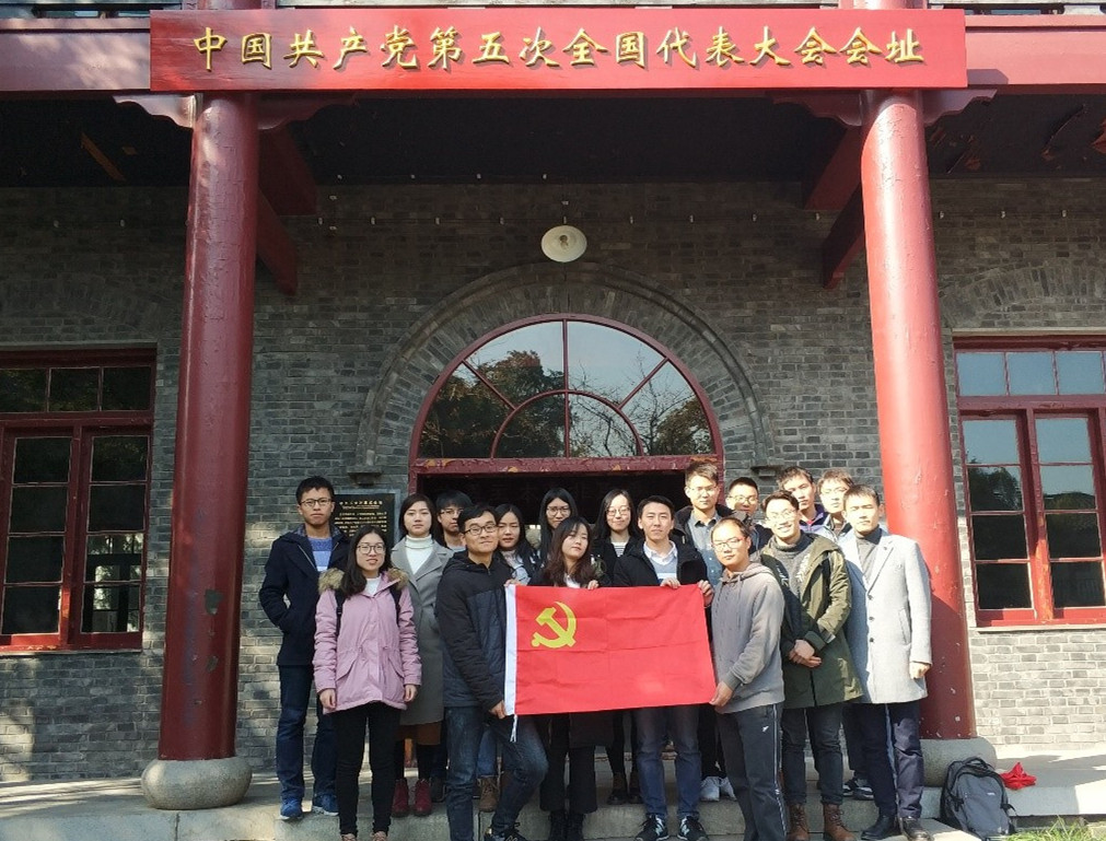 第三站是参观中共五大会址,马文瑾同志负责此处的实地微党课教学。马文瑾采用讲解员的形式,按馆内展物顺序指引大家参观学习,介绍了陈潭秋、伍修权和陈独秀等革命先辈事迹,分析了中共五大的历史特殊性,简述了中共五大后发生的南昌起义、八七会议和秋收起义等重大历史事件。马文瑾最后总结道:中共五大第一次设立了中央监察委员会,成为有规范地开展党内监督和反腐败工作的起点,具有重大的历史意义,表明了“党与腐败水火不容”的原则,这与十九大提倡的反腐无禁区、全覆盖、零容忍一致。支部成员们在回顾历史的同时,也深刻感受到十九大正切实贯彻着“不忘初心”,与腐败斗争到底。
