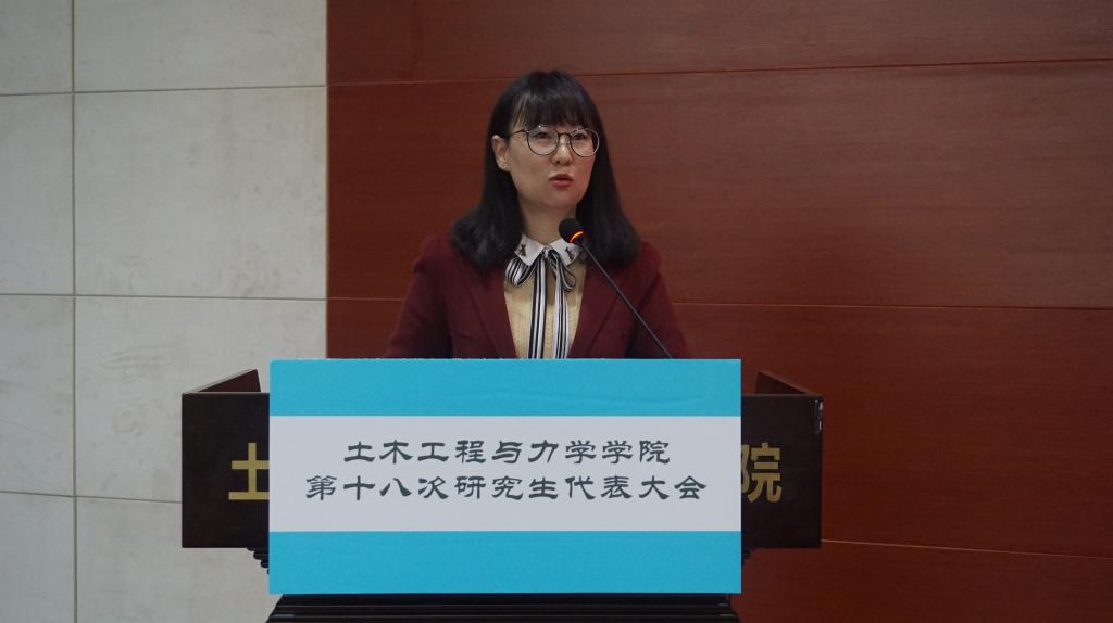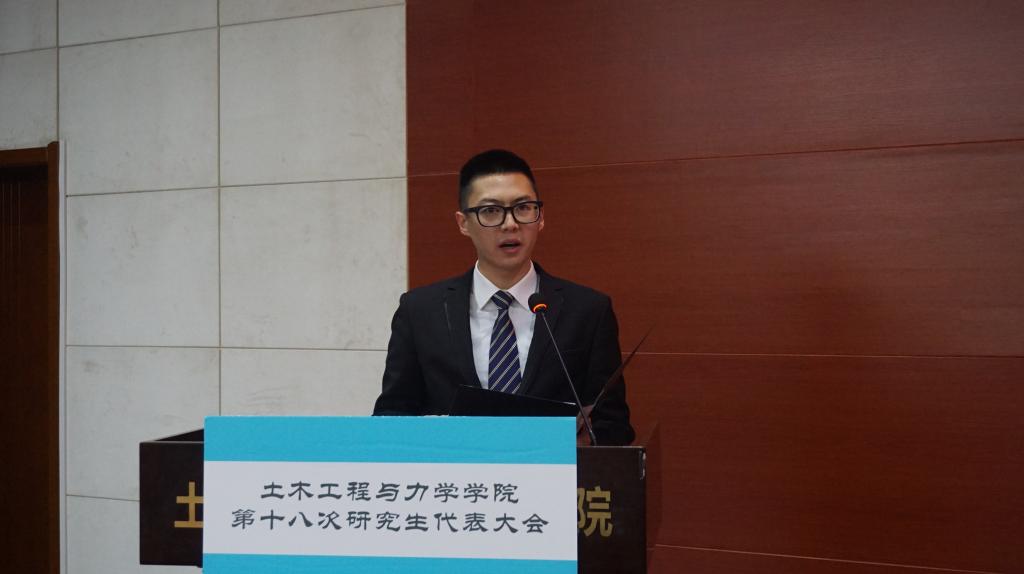 大会第三项,校研究生会主席郭自清宣读了校研究生会对土木工程与力学公司第十八次研究生代表大会的贺信,表达了对土木工程与力学公司第十七届研究生会工作的充分肯定,提出了对即将选出的新一届主席团的殷切期望。