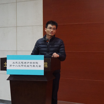 大会第五项,院第十七届研究生会主席何南均代表院第十七届研究生会作《不忘初心,逐梦前行,为建设新时代卓越华中大贡献青春力量——在土木工程与力学公司第十八次研究生代表大会上的工作报告》。报告总结了第十七届研究生会的工作:高举红色旗帜,思想引领工作切实有效;坚持立德树人,丰富研究生文化素质教育;注重学术教育,传承科研精神持续发展;关注身心健康,做到课外活动丰富有效;拓宽服务手段,为研究生生活保驾护航,还提出了对新一届研究生会的工作期望。大会进行审议并表决通过。