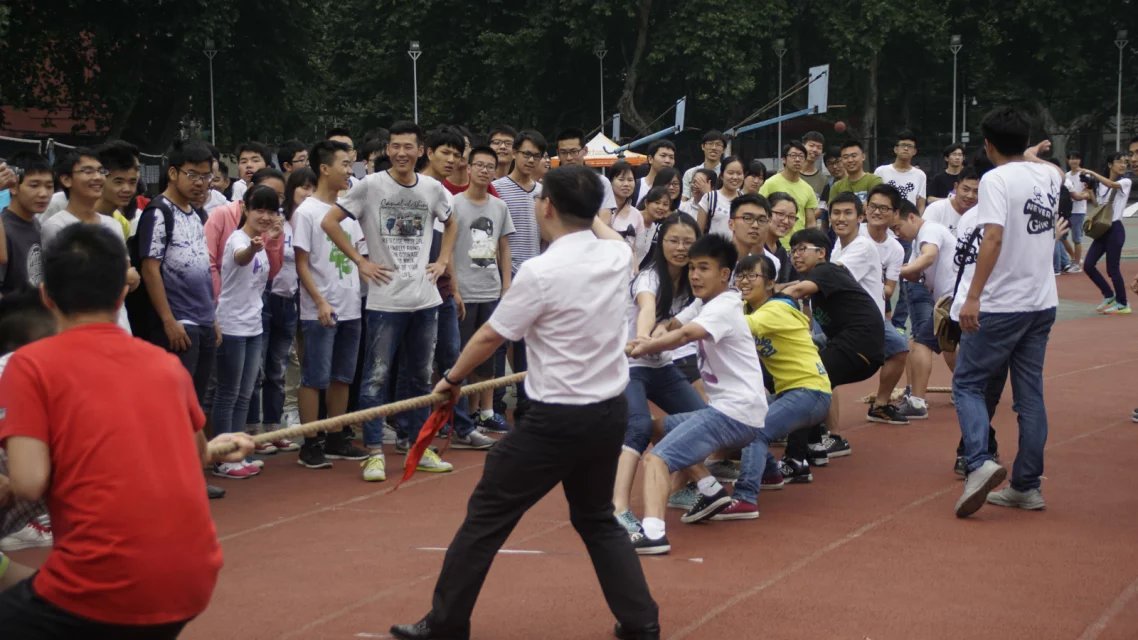 本次趣味运动会以拔河比赛热场,班级为单位,采用积分制,共14支班级队伍分别随机进行4次比赛,得分多的班级获胜。在欢导的主持下不同班级的力量角逐。值得一提的是,土木六班在拔河中更是别出心裁,在众人怀疑和惊讶的目光中,派上了两名女生,并特邀了女辅导员参与比赛,却收到了出乎意料的好结果,场上土六的其他选手像吃了菠菜的大力水手一样,势如破竹,坚不可摧,接连赢下几组比赛,令众人拍手称道。赛场旁边,整齐的号子、激动的尖叫、获胜的欢呼混成一片欢乐的海洋。