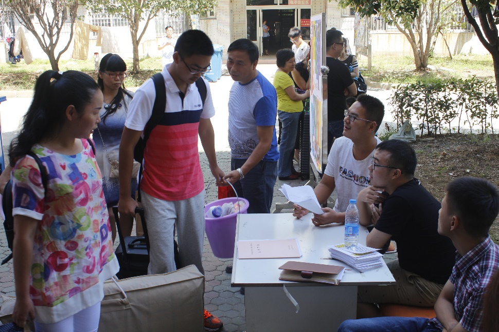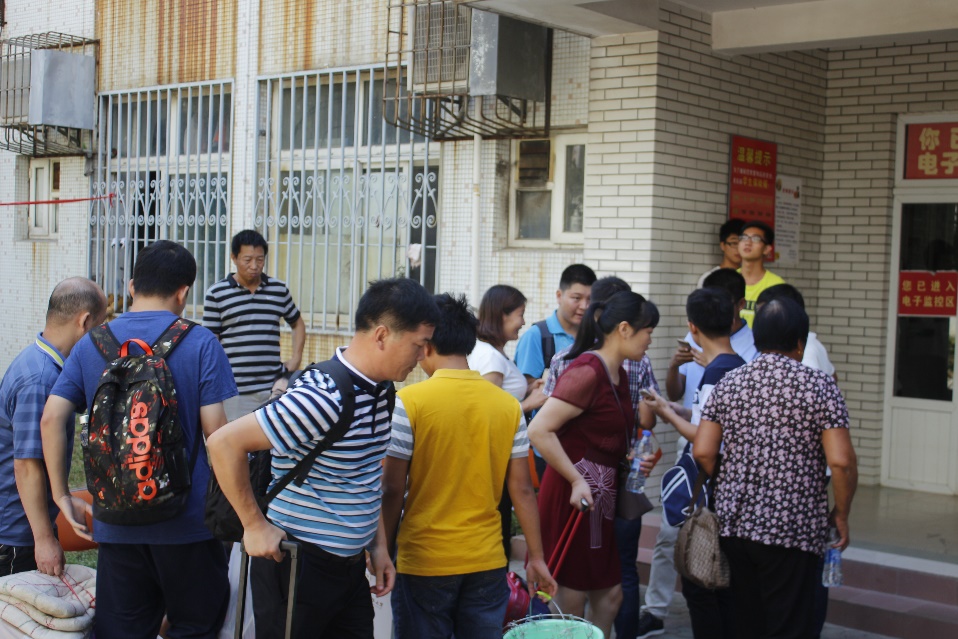淹没在人群中的16级辅导员栾导正细致认真的为家长和员工答疑解惑