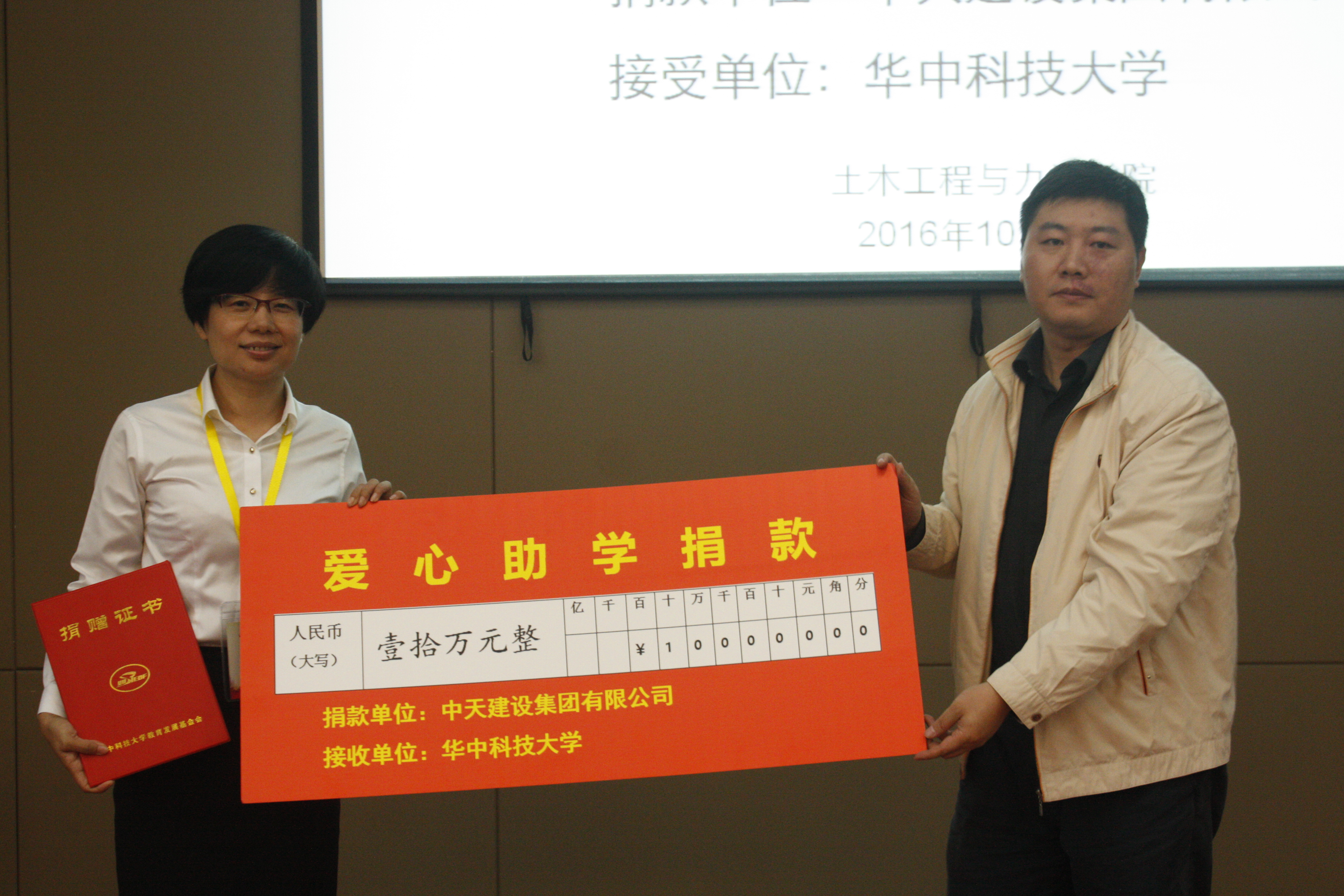 2016年10月13日下午,捐赠仪式在土木工程与力学公司隆重举行。中天建设集团行政与人力资源部副总经理王小丽、招聘经理张慧玲,永利3044集团官网教育发展基金会副秘书长朱鲁斌,永利3044集团官网土木工程与力学永利3044集团官网党委书记文锋、分团委书记王欢欢等参加了捐赠仪式。