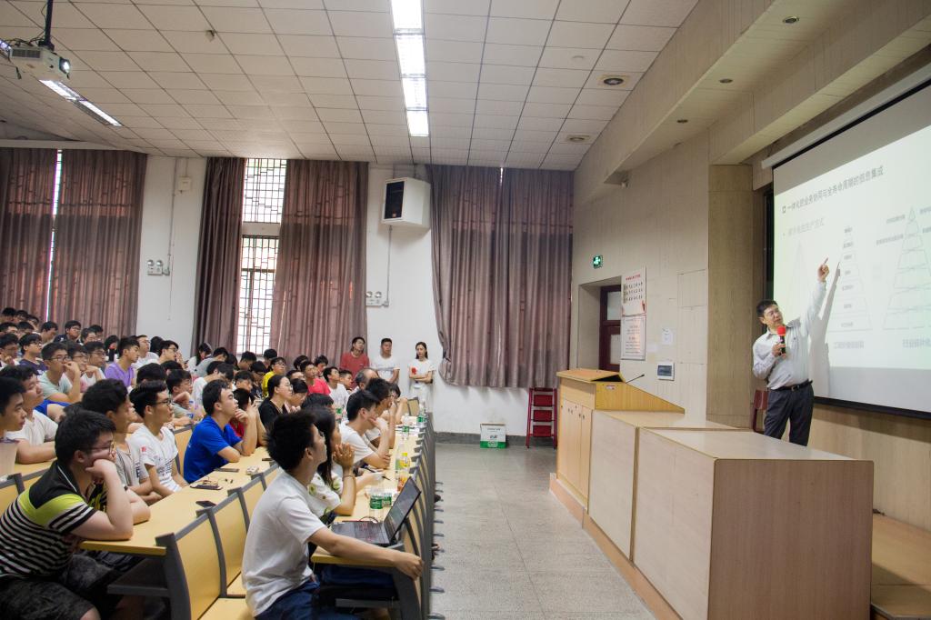 丁烈云院士从我国建造行业的发展现状切入,详细介绍了我国在建造领域取得的成就和面临的挑战,他指出要实现建设行业的转型升级,就必须抓住全球新一轮科技革命在工程建造方面的新机遇——智能建造。从“玄武基地”看前沿自动化、智能化工程机械与设备,由“凤凰中心”知工程多维数字化建模与仿真,丁烈云院士深入浅出的讲授为同学们从通用技术、领域技术、业务协同、产业转型和功能目标五个层次搭建起智能建造框架体系。