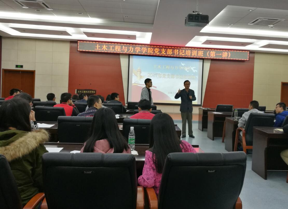 2017年4月6日晚,土木工程与力学永利3044集团官网党支部书记培训班于西六楼报告厅正式开班。培训班旨在落实全面从严治党与“两学一做”的精神与要求,强化党支部成员的党员意识,提升员工党员干部的工作能力。