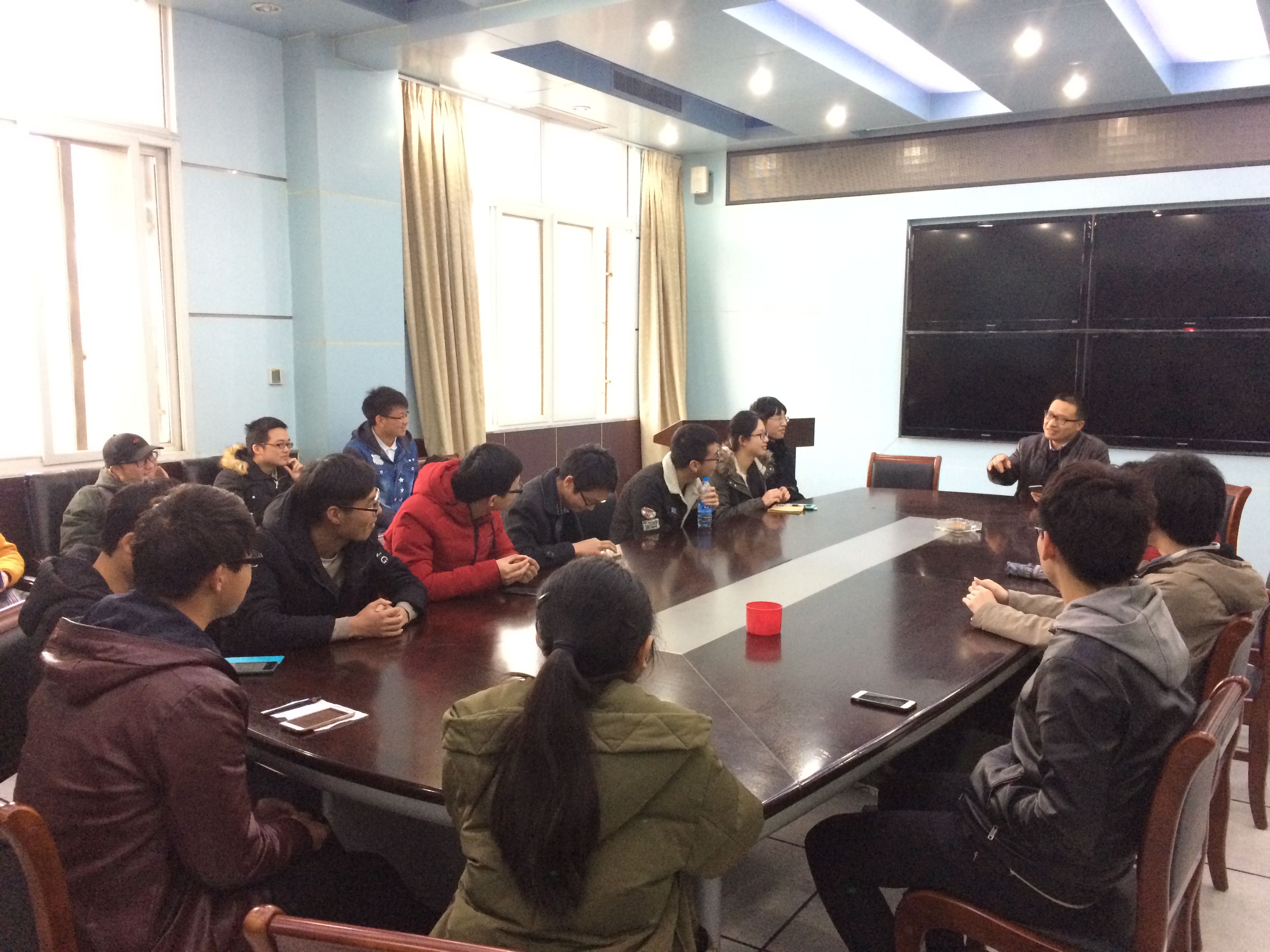 2017年3月22日16:00,土木工程1405班在西六楼雷电会议室召开班会,公司副经理、土木工程1405班教师班主任郑俊杰参加会议。