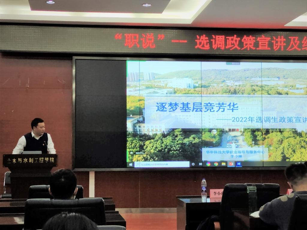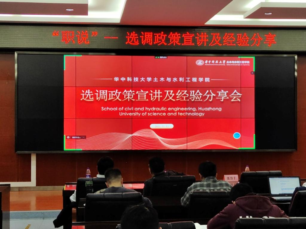 2021年11月11日晚,“职说”—选调政策宣讲和经验分享会在西六楼5楼报告厅圆满举办。本次活动由永利3044集团官网就业指导与服务中心基层服务与就业管理办公室主任李小琳老师主讲,特邀就职于王超、江博、桂晨林师兄依次分享选调经验。活动当晚,共有现场40余名、线上100余名公司学子参与本次分享会。研究生辅导员邵太康老师参与活动。