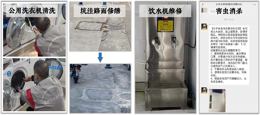 在常态化权益反馈过程中盯紧问题不松懈、强化服务不停歇,切实推进解决“南二楼饮水机维修”、“实验室需要消杀蟑螂等害虫”、“部分宿舍楼的公共洗衣机内部很脏,希望能有专人清洗”、“部分路面存在几处坑洼,骑行时容易发生事故,希望能进行维修”等历时较久的权益诉求,助力权益工作落深落实。