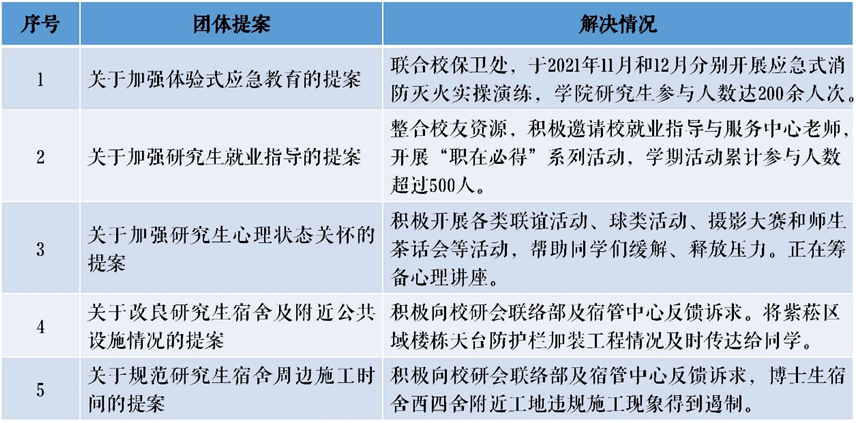 以校第八次研究生代表大会为契机,以需求和问题为导向,将提案处理作为研会活动目标。切实推进公司层面有关应急教育、就业指导、心理关怀的提案得到处理或解决;通过与校研会、宿管中心联系,协力促使公司层面有关提案得到推进。
