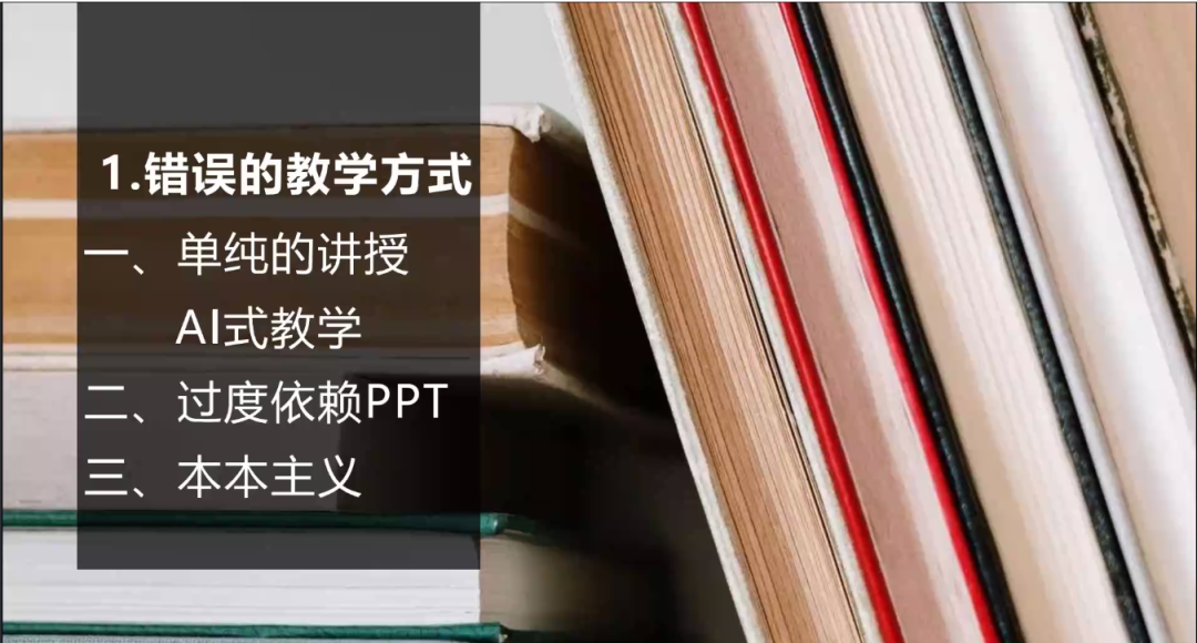 首先是反面例子——错误的教学方式。AI式教学、过度依赖PPT、本本主义这些都是讲授者在将党课常常犯得错误,讲党课正是见水平、见层次、见理论功底的时候,讲述的人对理论认识不够,对知识掌握不够熟练就会出现这样的教课方式。