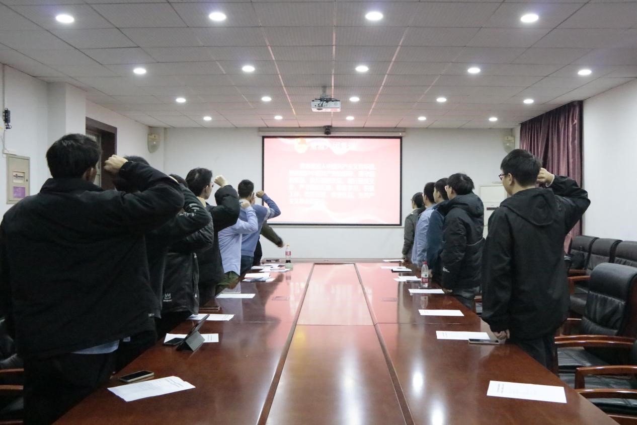 临时团支部成立仪式上,全体与会成员重温入团誓词。