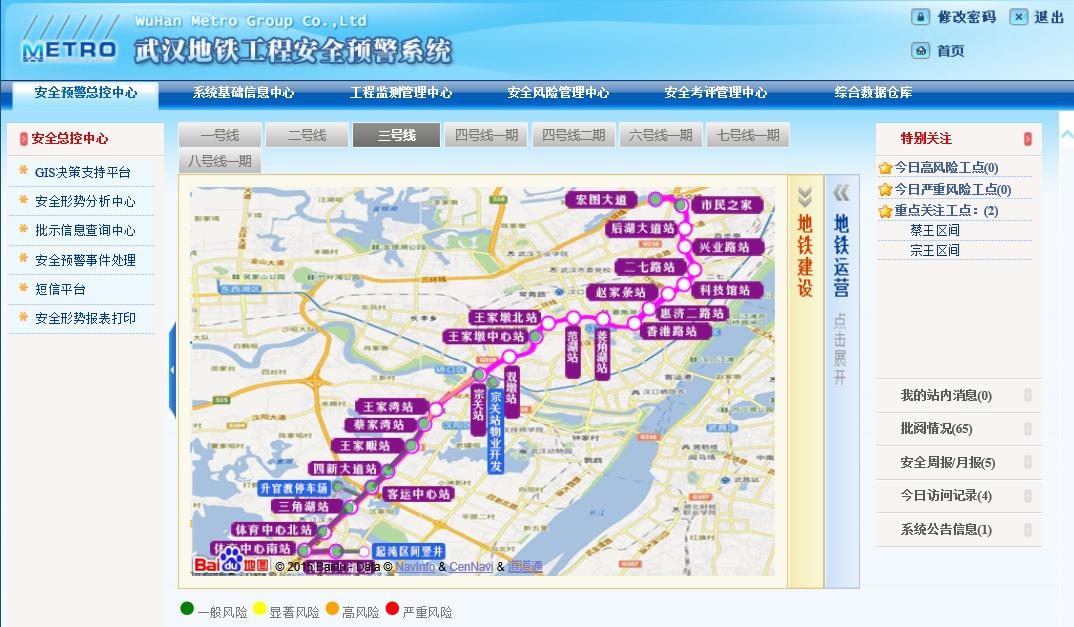 针对施工中安全风险预警,揭示了安全风险时空演化规律与耦合作用机理,提出了基于信息融合与时空耦合的地铁施工安全风险预警方法。该方法成功应用于地铁车站深基坑超近距离(基坑距离桥桩最近处1.25米)穿越既有运营线路工程中,成功实现施工期间既有线路无停运一天;