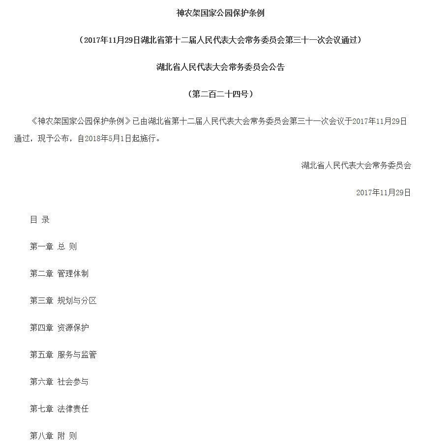 公司作为起草单位的《神农架国家公园保护条例》正式颁布