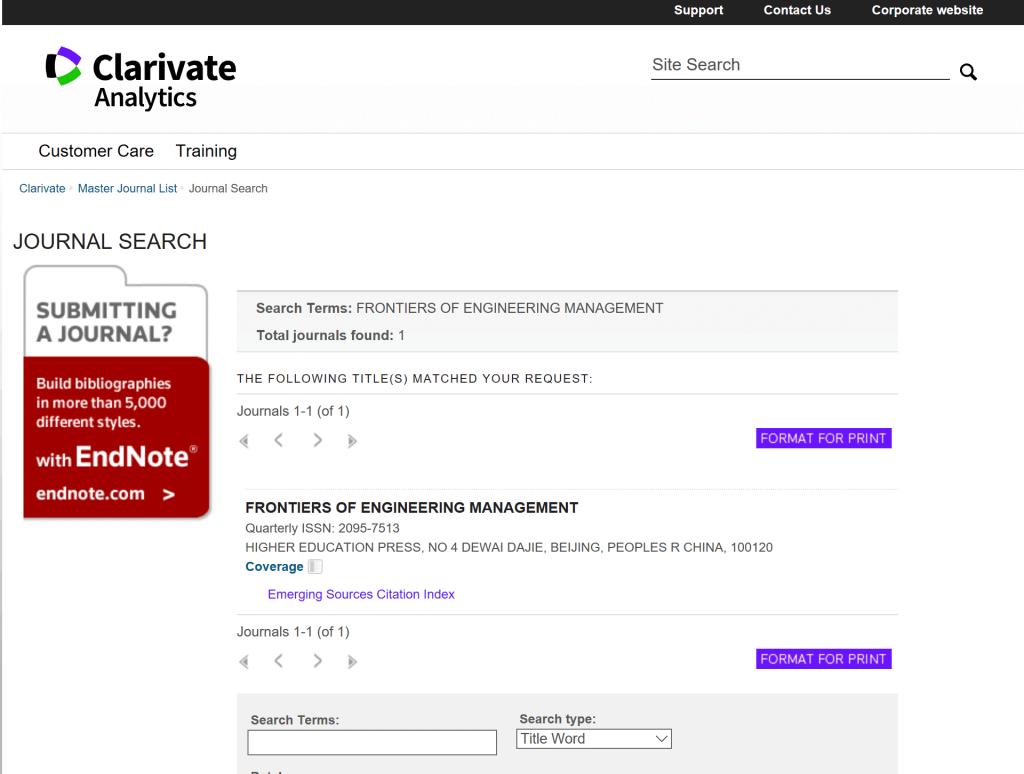 《工程管理前沿》国际期刊被汤森路透ESCI收录