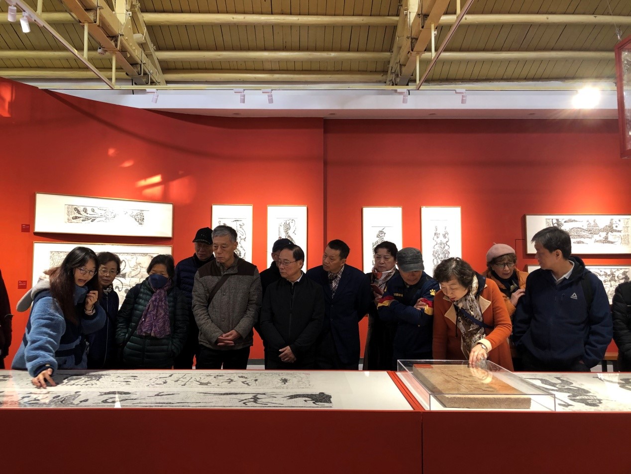 土木与水利工程公司退休党支部11月27日上午组织退休老党员、退休老同志参观公司“双一流”建设文化品牌重点项目“喻见典藏——汉画像石精品拓片展和美丽乡村小朱湾”。