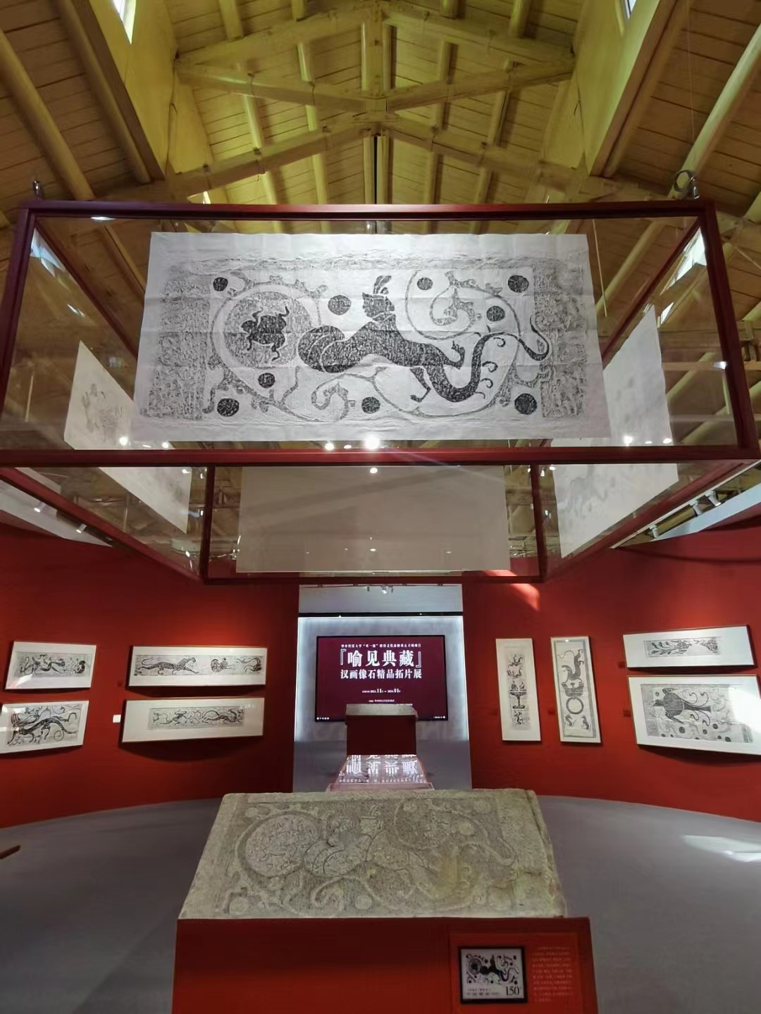 上午八点半,大家在校史馆门口集合参观喻见典藏——汉画像石精品拓片。本次展览从人文公司珍藏拓片中精心挑选出64件,南阳市汉画馆提供拓片22件、汉画像石(复制件)2件,以及南阳理工公司郭书云私人收藏2件和1935-1936年杨廷宾、王正朔、王正今等经台静农先生转寄魏建功的邮包,分天文神话、祥瑞升仙、社会生活、舞乐百戏、历史故事、建筑艺术、前辈信札等七个部分,分别陈列在内外两个展区,不仅通过这些生动、立体的汉代画卷,让我们近距离了解汉代社会文化,同时感受前人为保存优秀传统文化艰苦卓绝的付出与代价。