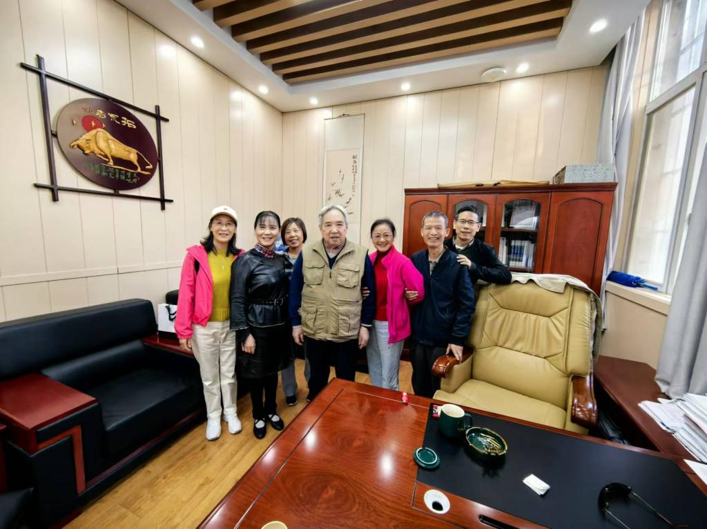 在一间古色古香的办公室里,员工们与张勇传院士的合影成为了聚会的序幕。墙上挂着“老黄牛”精神的牌匾,象征着坚韧与奉献。员工们围绕在张院士周围,他们的脸上洋溢着对院士的敬仰和对往昔岁月的怀念。张院士的和蔼可亲和智慧的谈吐,让在场的每一位员工都感受到了科技知识的力量和探索精神的传承。