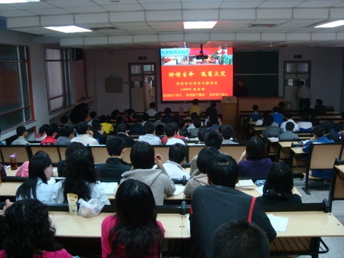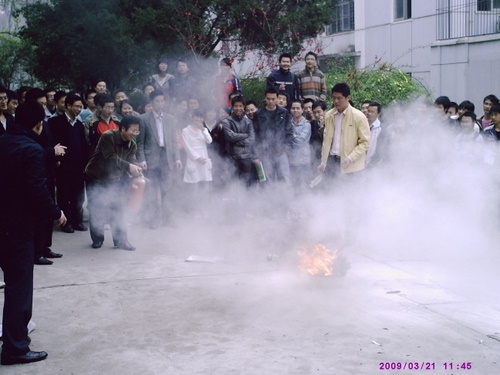 讲座完以后,200多名师生一起来到水工楼下进行了现场消防演习。在两位教官和毛老师的指导下,公司领导、老师和多位同学亲身操作了灭火器。11时左右,演习接近尾声,但还有不少同学跃跃欲试,希望真正掌握一些实用的消防安全技巧。