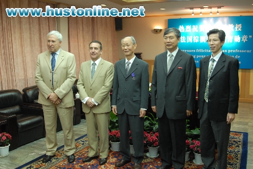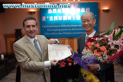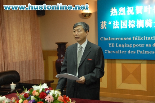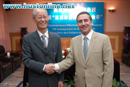 法国驻武汉总领事费勇先生高度评价了叶鲁卿教授坚持不懈地为推动中法两国科研合作及加强中法关系所做出的贡献,热情赞誉了叶鲁卿教授表现出的境界和人格魅力。费勇先生指出,叶鲁卿教授不仅是一位享誉国际的优秀学者,而且更是一位推动科技活动面向世界的倡导者。为褒奖叶鲁卿教授在执教生涯中努力推动、加强中法科技合作、员工交流、学者互访所作出的巨大贡献,法国政府决定授予叶鲁卿教授法国一级骑士教育勋章。