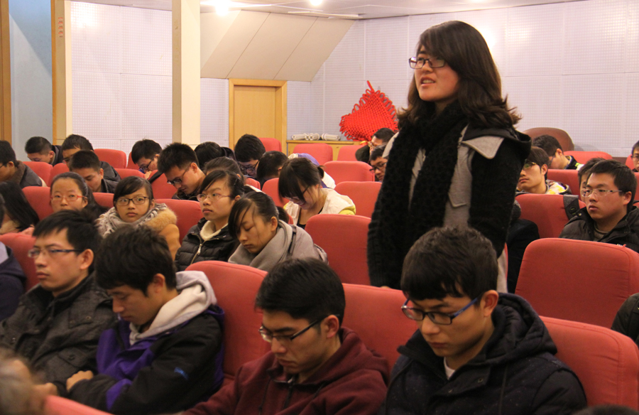“德国创新与中国创新的比较”、“全面建设小康社会,如何体现在一个家庭上”、“大科学模式下创新为何”、“有关企业对雾霾的影响”、“万众创新和服务社会的切合点”……随后几名党员针对此次讲座进行思考并提出了自己的问题,钟书华教授对师生进行了精彩的互动。