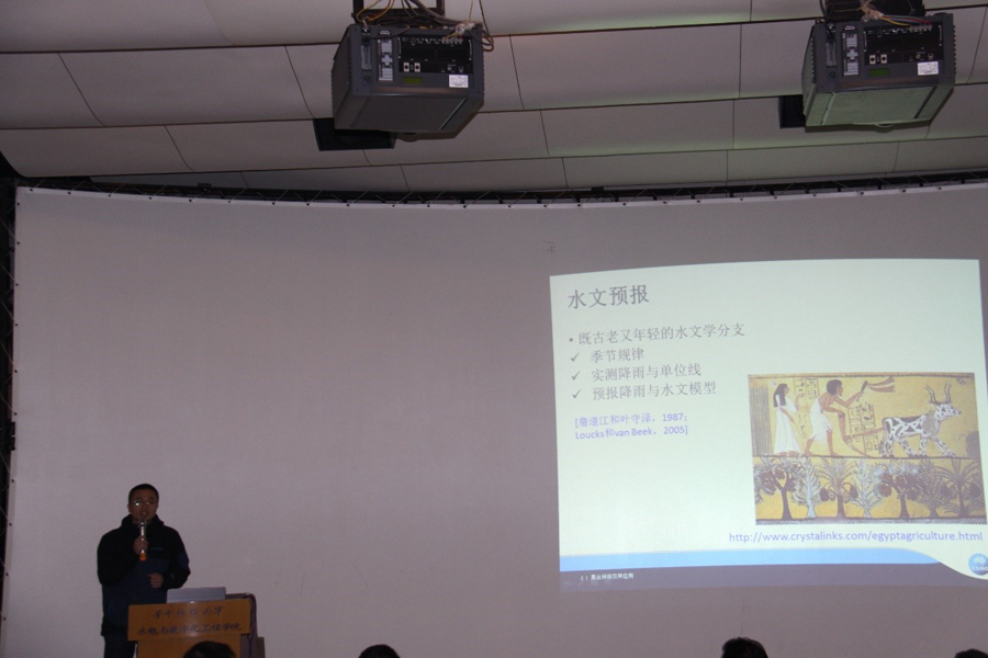 赵铜铁钢博士来自澳大利亚联邦科学工业组织(Commonwealth Scientific and Industrial ResearchOrganization,CSIRO),结合工程实践从集合预报模型构建、结果检验及调度应用等方面展开,深入探讨了量化决策不确定性的调度决策分解方法,报告了基于滑动余留库容的水库调度等研究成果;姚慰炜博士来自德国慕尼黑工业大学水利生态所,以“水利生态模型在水利水电工程以及水资源方面的应用”为题,重点介绍了考虑水动力、河床泥沙运移、河流栖息地和鱼类种群数量的水生态模型建模计算与比较,并对人工投放鱼类的影响进行了分析;香港城市大学王龙博士阐述了基于数据驱动和图像辨识的风电机组状态故障识别和状态监测方法等研究成果。