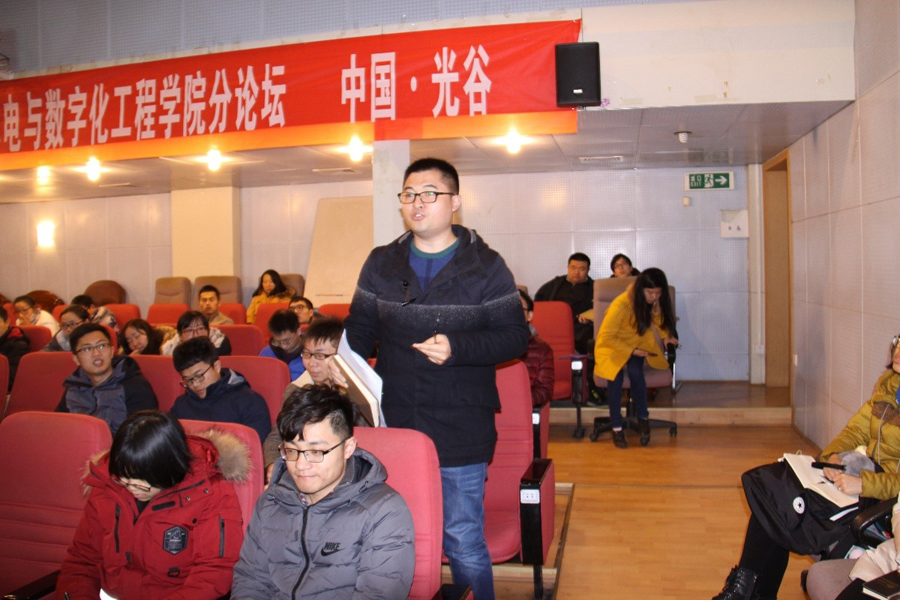 杨海斌致欢迎辞,表示很高兴能通过“东湖论坛”的平台,让公司师生有机会同海内外优秀的青年学者进行学术交流,目前华中大正向世界一流高校大步迈进,真诚希望并欢迎各位优秀人才加盟公司,从事教学与科研工作,投身于公司“双一流”建设。周建中经理介绍了公司概况和三位学者的简历。与会师生分享了三位海外青年学者的研究经历和已取得的学术成果。