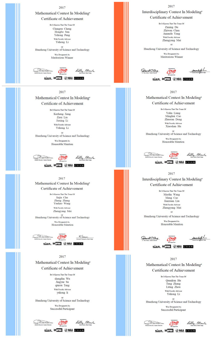 2017年美国老员工数学建模竞赛官网正式公布获奖名单,水电学子获一等奖(Meritorious Winner)2项、二等奖(Honorable Mention)4项、三等奖(Successful Participant)2项,创水电学子代表公司参加该项赛事历史最好成绩。