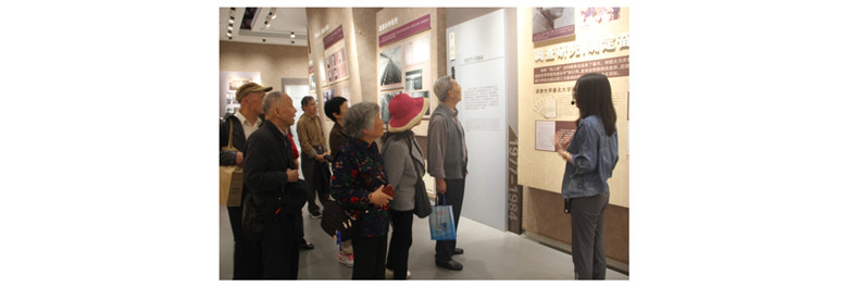 首先,员工们在水电公司辅导员以及校史馆讲解员的陪同参观了校史馆。本次前来参观的员工大部分是同班同学,年龄最大的有80多岁。他们认真细致地观看着展墙上的图片资料和展柜里的物品,激动地与讲解员交流着,又满怀回忆地和自己的老同学谈论公司的发展和当年的故事。