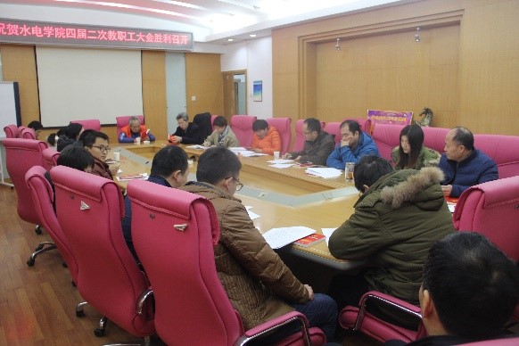 2017年12月7日下午2时30分,水电公司四届二次教职工大会在仿真中心三楼会议厅召开。公司领导班子成员、全体教职工、退休教师代表和员工代表齐聚一堂,共同回顾去年的工作成果。大会由公司工会主席曾小凡主持。