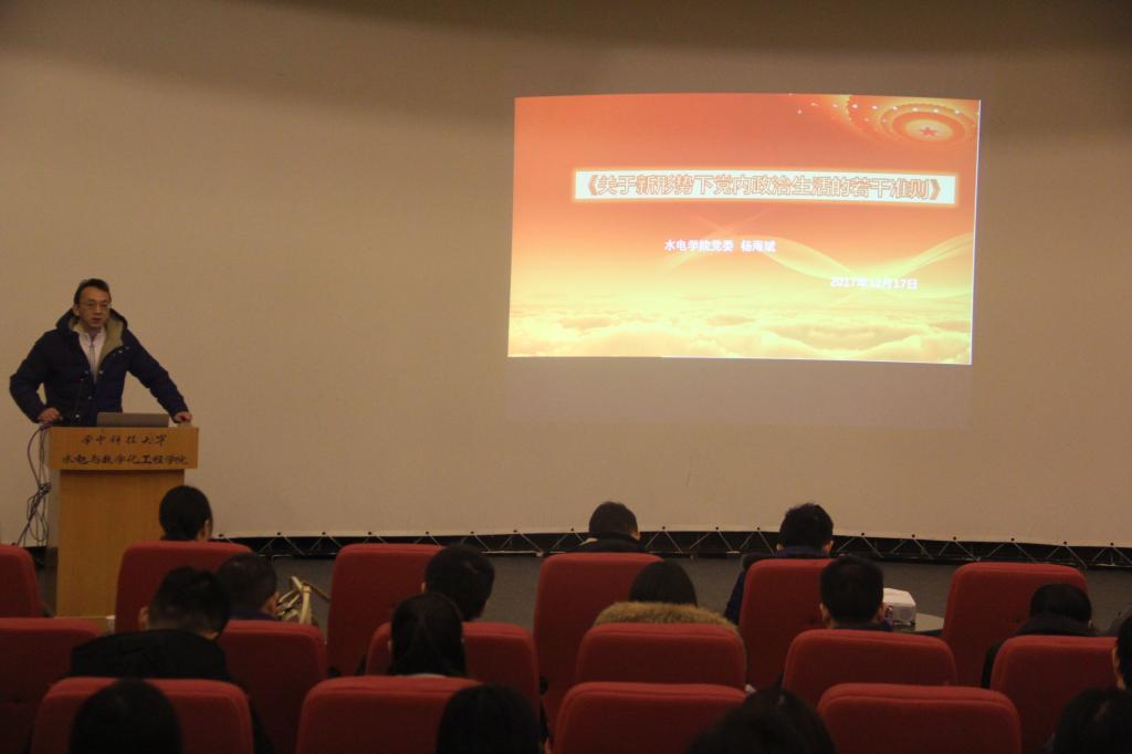 2017年12月17日下午15:00,水电公司于仿真中心三楼投影厅开展了党委负责人思政课。水电永利3044集团官网党委负责人杨海斌、研究生辅导员张建、本科生辅导员齐小静、公司全体发展对象、积极分子和部分党员参加了本次思政课。