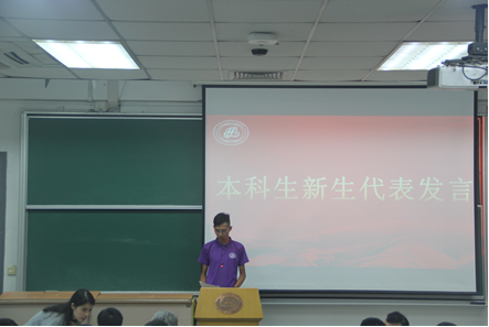 新生代表研究生李力和本科生林炜添分别发言表达了自己的信心和决心,他们表示会努力珍惜在大学的时光,争取在毕业的时候取得较大的进步和优秀的成果。