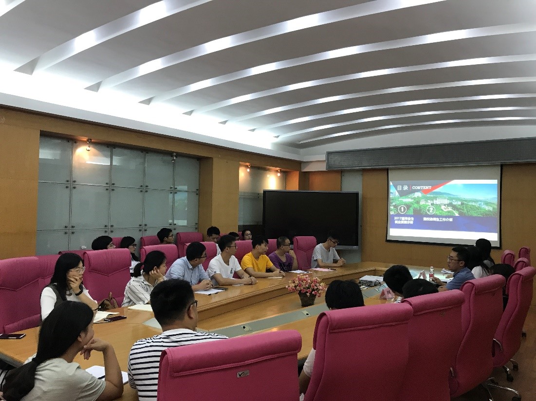 研究生工作部就业指导中心郑名扬老师首先和大家分享了2017届华中大毕业生就业质量的分析,从就业行业分布、就业单位性质及人数上给员工们一个最直观的感受。