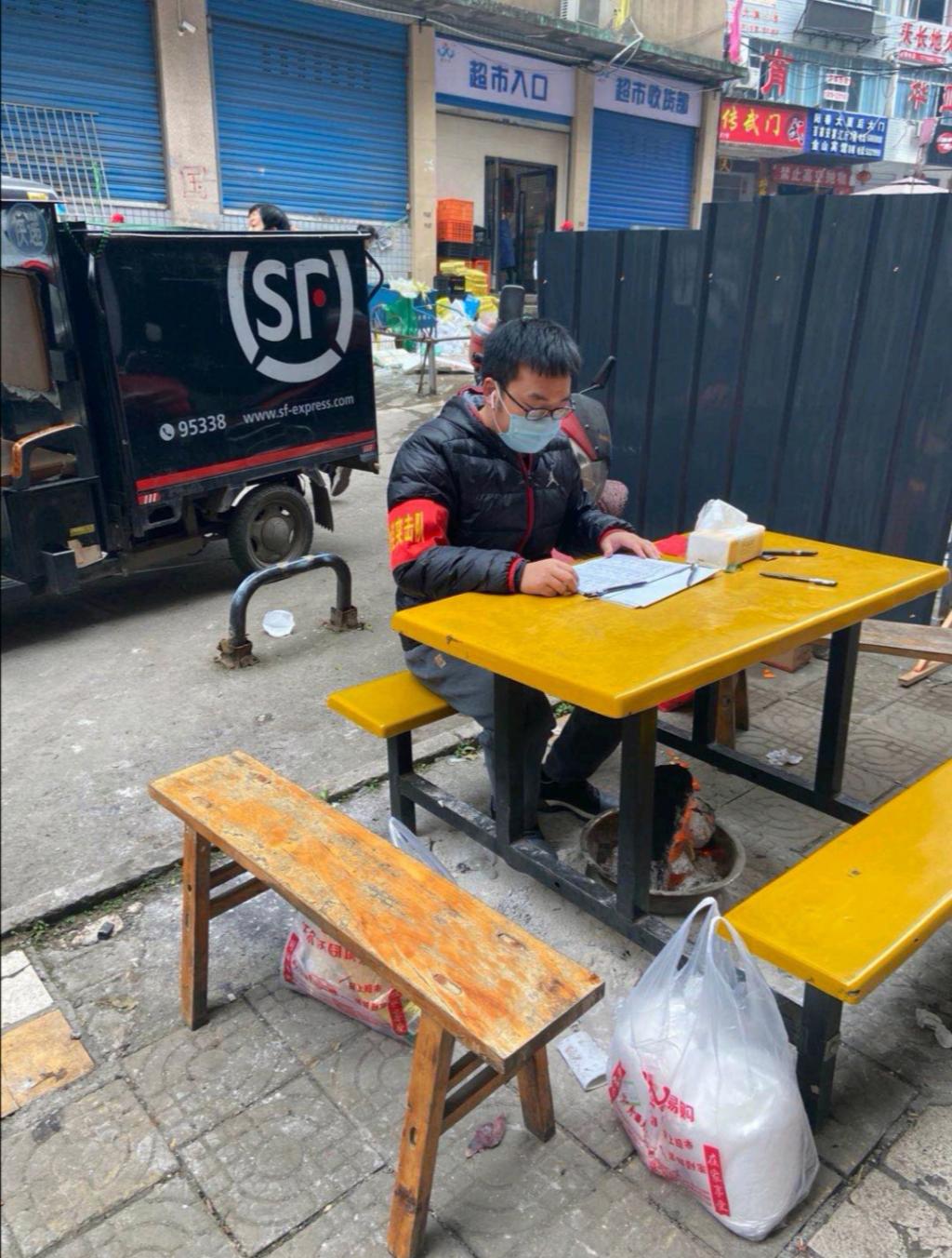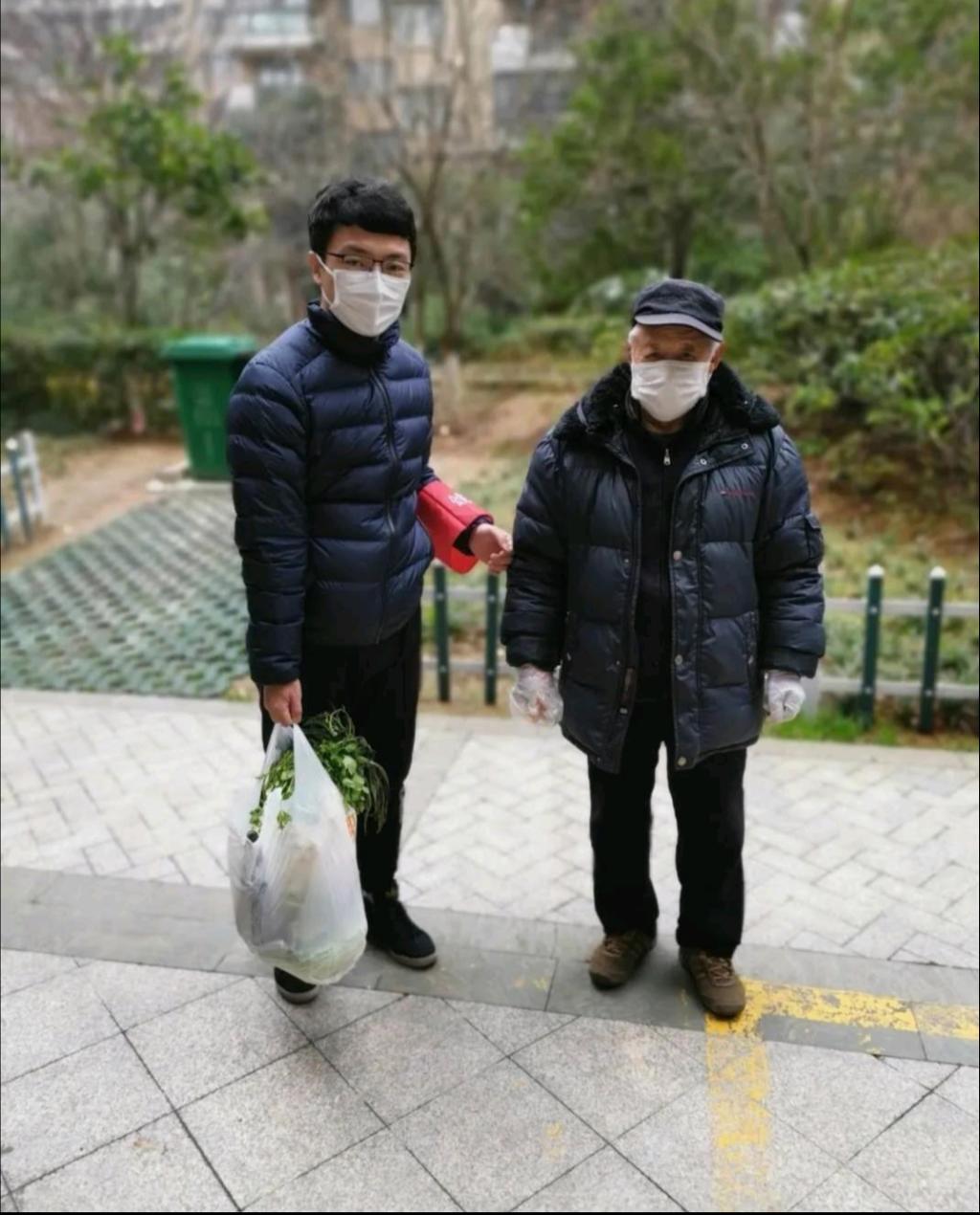 17级硕士研究生倪鸣, 通过调查问卷和小程序为社区居民的集中采购进行统计及账目核对、为进出小区居民测量体温、采购物资搬运、为孤寡老人及医务人员家属运送爱心物资……作为一名社区志愿者,他用行动为抗击疫情尽了自己的一份力。