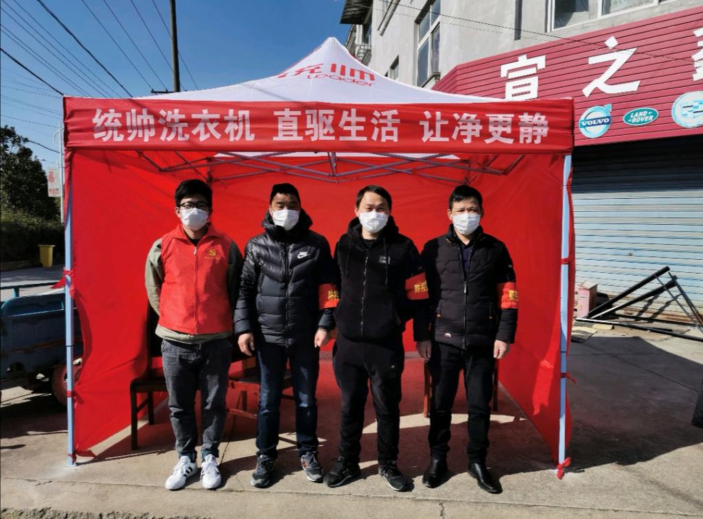 19级硕士研究生包文(左一):“作为一名青年老员工,不不仅仅发出‘武汉加油’的口号,我更愿采取实际的行动方式来助力抗疫。”每天,他和大家轮流在社区的主要路口站岗,限制外来车辆进入社区,为本地居民进行体温测量,给本地车辆的出入发放通行证。